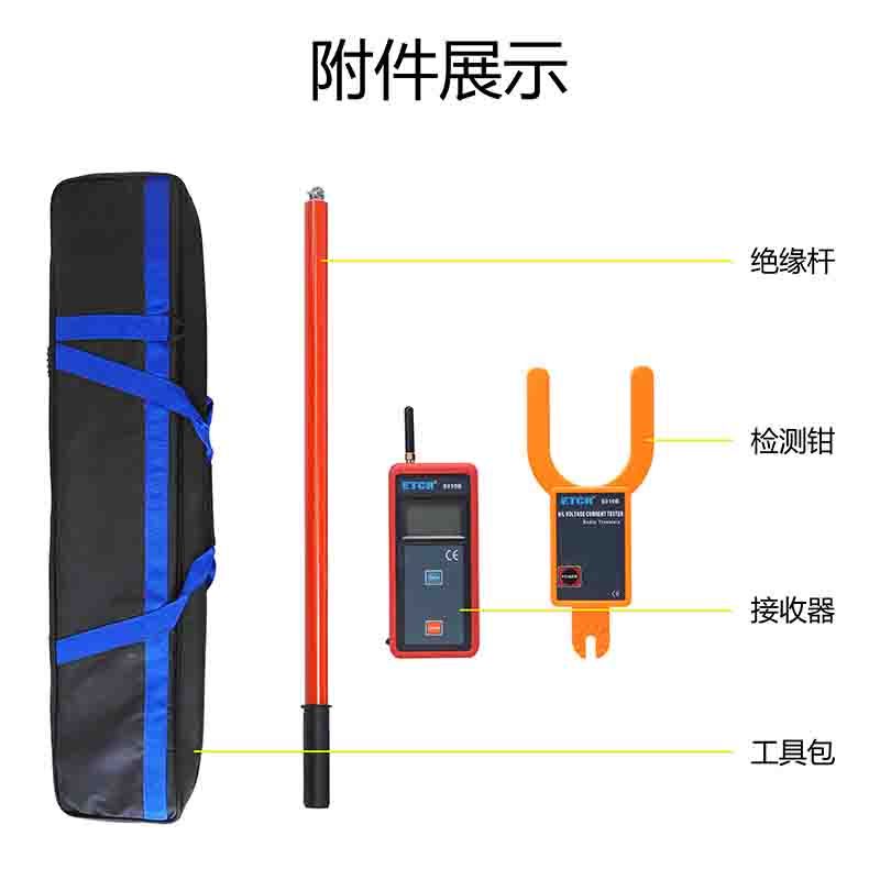 ETCR9310B大口径叉形高低压叉形电流表由叉形钳头、接收器、伸缩绝缘杆组成。在110kV以下测试需带绝缘杆操作(可定制500kV以下测试),在600V以下可不使用绝缘杆。仪表还具有数据保持、数据存储等功能。