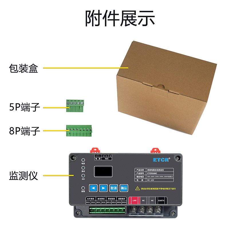ETCR3580C绝缘电阻在线监测仪系列采用更清晰OLED液晶屏,测试参数可在仪器按键或后台设置,安装方便,测试可靠,广泛应用于电信、电力、气象、机房、油田、工矿企业等重要场所对绝缘电阻的在线监测。