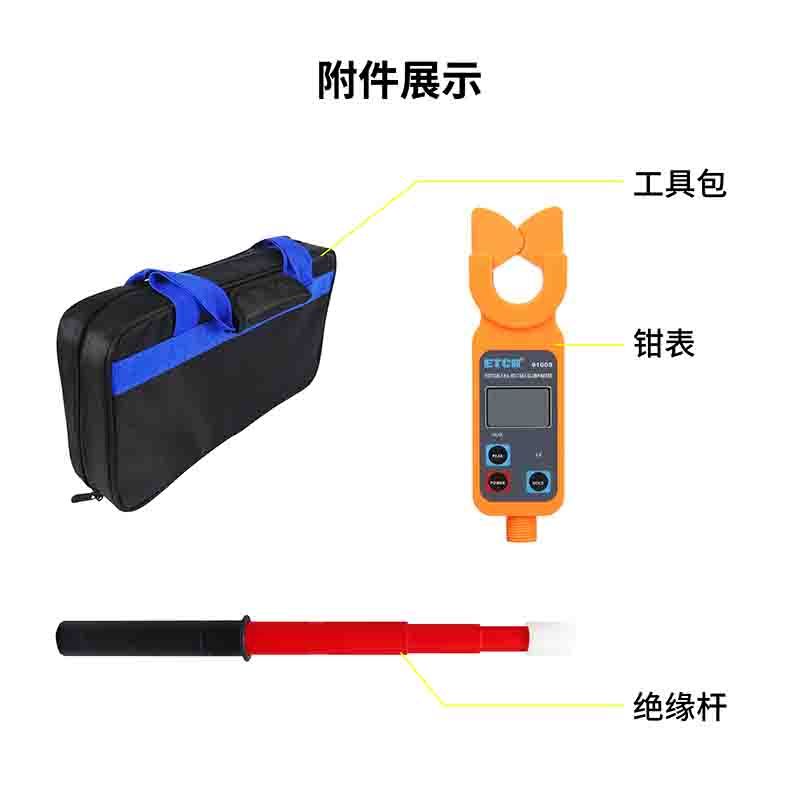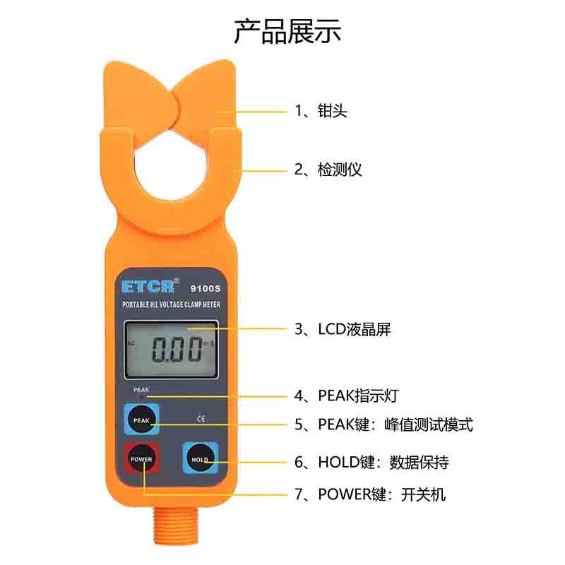 ETCR9100S便携式高低压钳形电流表钳头与引导区创新的一体化设计,通过按压或退拔绝缘杆能快速方便钳夹或撤离被测导线,安全快捷。仪表还具有峰值保持、数据保持、数据存储等功能。