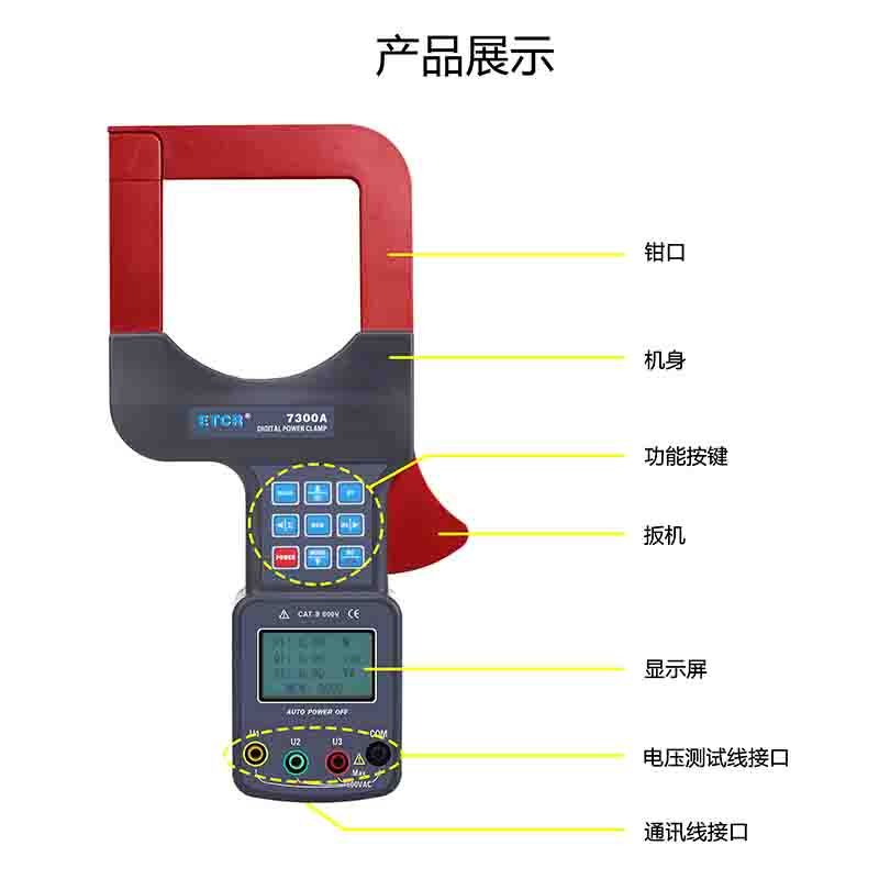 ETCR7300A大口径三相钳形功率表测试精度高、稳定性好。大口径钳头(80mm×80mm)使用非常方便,仪表可存储200组数据,通过USB接口和系统软件上传所存数据到电脑,实现历史数据读取、查询、保存、打印等功能。