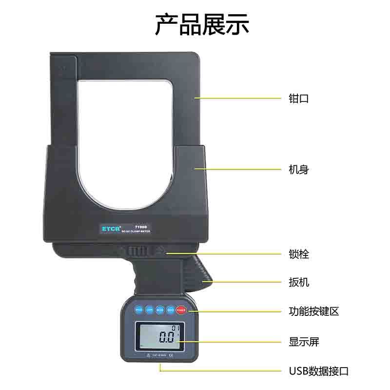 ETCR7100D超大口径直流/交流钳形电流表具有峰值保持、数据保持、数据存储等功能,配备USB接口和上位机软件,可以通过电脑在线实时监控与历史查询,动态显示,有*大、*小、平均值指示,具有历史数据读取、保存、打印等功能。